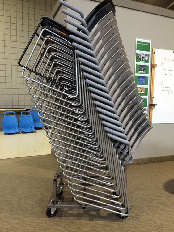 At approximately 13.5 pounds, the chair is lightweight yet durable. It stacks easily and is designed to be moved on its own cart, making it ideal for multi-use spaces where layouts change frequently.