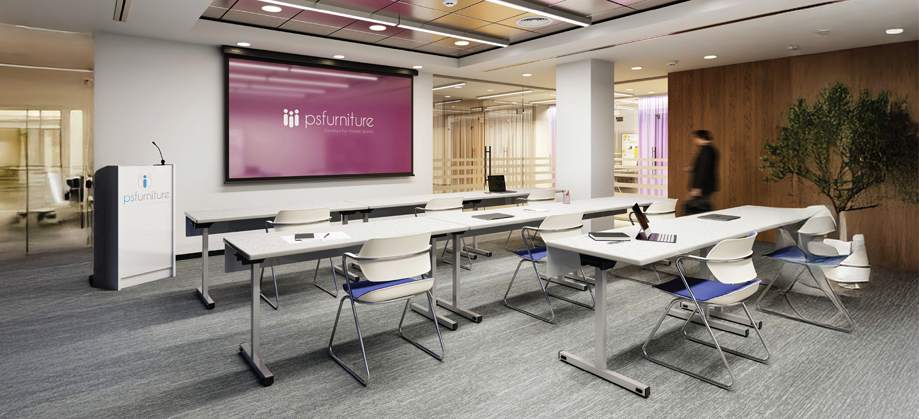 Whether you want changeability in layout, electric power, modesty panels, logo laminates, rolling, folding, lightweight, whatever for your tables…PS Furniture offers them all.